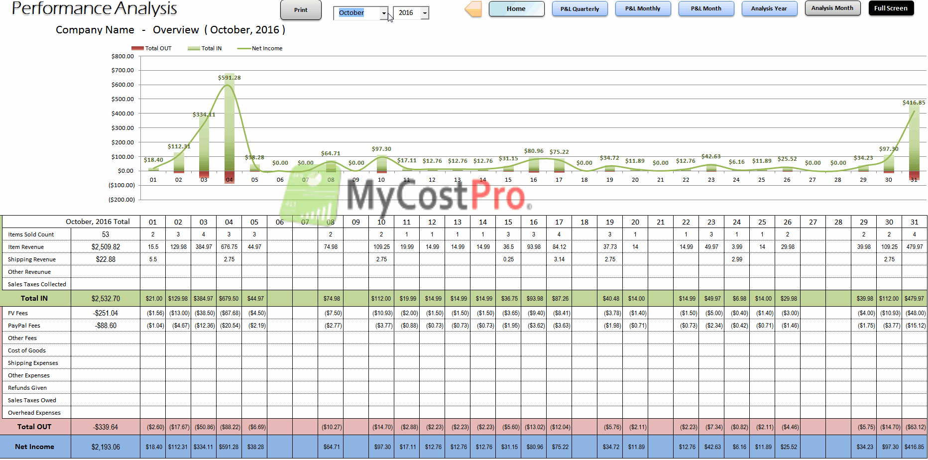 With MyCostPro, you can easily filter your sales data to determine your best selling items or categories, allowing you to focus on the most profitable listings!